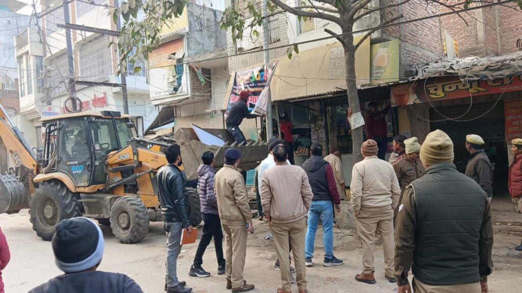 गाजीपुर। शासन द्वारा निर्गत निर्देशों के पालन के क्रम में थाना कोतवाली पुलिस व नगर पालिका गाजीपुर शहर की संयुक्त टीम द्वारा थाना कोतवाली क्षेत्रांतर्गत विशेश्वरगंज से लेकर थाना कोतवाली तक मुख्य मार्गों, चौराहों और व्यस्त बाजार क्षेत्रों में सड़क किनारे अवैध रूप से लगाए गए ठेले, खोमचे और वाहनों आदि अतिक्रमण को हटवाया गया। संबंधित लोगों को सख्त हिदायत भी दी गई। उल्लेखनीय है कि दिनांक 03.01.2026 को पुलिस प्रशासन के उच्चाधिकारियों व नगर पालिका की टीम द्वारा मुख्य मार्गों, चौराहों और व्यस्त बाजार क्षेत्रों में पैदल गश्त कर अतिक्रमण करने वाले दुकानदारों/फुटकर विक्रेताओं व अन्य को कड़ी चेतावनी दी गई थी व हिदायत दिया गया था कि स्वयं ही अपनी अवैध दुकान/ठेले/सामान/ इत्यादि को हटा लें अन्यथा कड़ी वैधानिक कार्यवाही की जाएगी जिसके क्रम में आज यह अभियान चलाया गया । प्रशासन ने दुकानदारों और ठेला चालकों को चेतावनी दी कि वे सार्वजनिक मार्गों और फुटपाथों पर अतिक्रमण न करें, क्योंकि इससे आवागमन बाधित होता है और दुर्घटनाओं का खतरा बना रहता है। पुलिस ने उनसे निर्धारित स्थानों पर ही अपने प्रतिष्ठान लगाने और कानून-व्यवस्था बनाए रखने में सहयोग करने की अपील की। अधिकारियों ने स्पष्ट किया कि भविष्य में भी अतिक्रमण पाए जाने पर नियमानुसार सख्त कार्रवाई की जाएगी। पुलिस द्वारा चलाया गया यह अभियान जनहित में है, जिसका मुख्य उद्देश्य सड़कों को अतिक्रमण मुक्त कर यातायात को सुगम बनाना है। स्थानीय नागरिकों ने भी पुलिस की इस पहल की सराहना की और सहयोग का आश्वासन दिया । इसी क्रम में जमानियां मोड से पॉलिटेक्निक कॉलेज व लंका चौराहा व अन्य प्रमुख मार्गो व स्थानों पर इसी प्रकार का अभियान चलाकर अतिक्रमण हटाया जाएगा । इस अवसर पर क्षेत्राधिकारी नगर, प्रभारी निरीक्षक कोतवाली मय फोर्स व नगर पालिका की टीम मौजूद रही.
