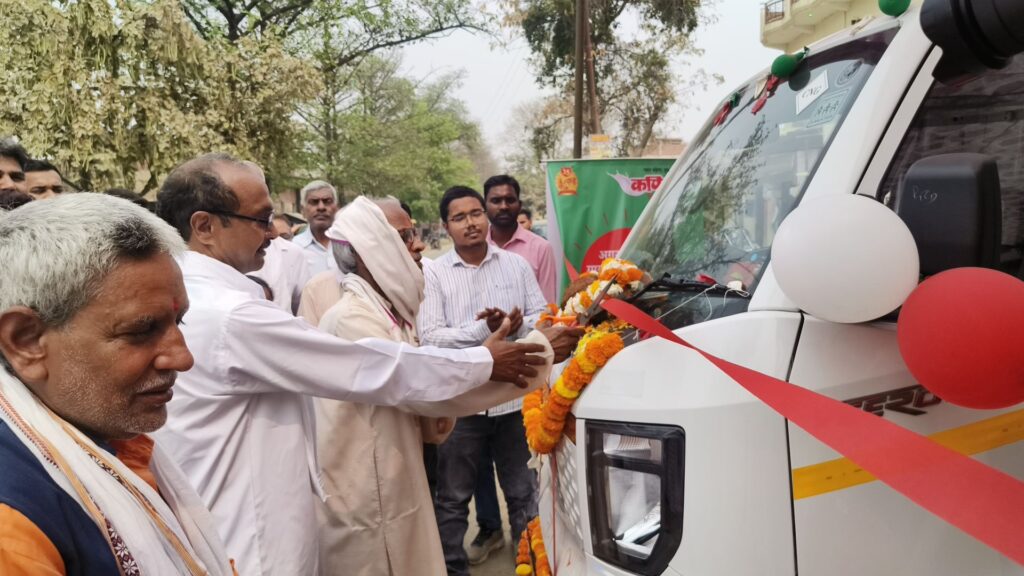 गाजीपुर। सदर तहसील अंतर्गत आदर्श गांव में पशुपालकों की सुविधा के लिए कपिला गौ एंबुलेंस को हरी झंडी दिखाकर रवाना किया गया। इस पहल का उद्देश्य बीमार गाय-भैंसों को समय पर चिकित्सीय सुविधा उपलब्ध कराना है, ताकि पशुपालकों को राहत मिल सके।