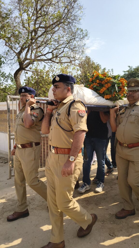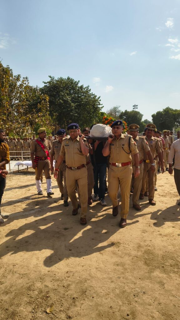 गुरुवार को पुलिस लाइन स्थित शहीद स्मृति स्थल पर श्रद्धांजलि सभा का आयोजन किया गया। इस दौरान पुलिस अधीक्षक डॉ ईरज राजा , अपर पुलिस अधीक्षक ग्रामीण अतुल कुमार सोनकर, क्षेत्राधिकारी नगर शेखर सेंगर, क्षेत्राधिकारी सैदपुर रामकृष्ण तिवारी, प्रतिसार निरीक्षक, प्रभारी निरीक्षक कोतवाली महेंद्र सिंह सहित अन्य पुलिस अधिकारियों व कर्मियों ने नम आंखों से उन्हें अंतिम सलामी दी।