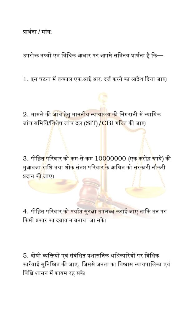 मुख्यमंत्री ने साफ कहा कि भाजपा संगठन और सरकार पीड़ित परिवार के साथ खड़ी है और निष्पक्ष जांच के लिए SIT गठित कर दी जाएगी। इसके बाद नेता प्रदेश संगठन मंत्री धर्मपाल सिंह से भी मिले, जिन्होंने परिवार के प्रति संवेदना व्यक्त की।