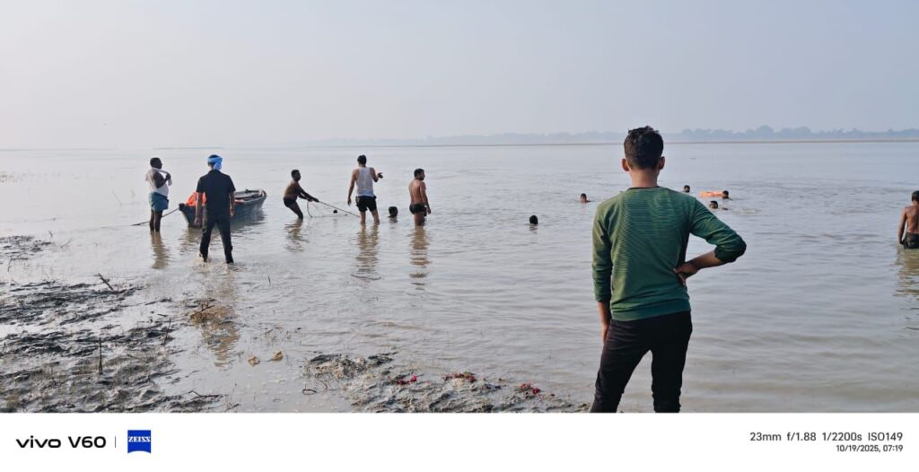 गाजीपुर। सुबह का सन्नाटा, गंगा किनारे उगते सूरज की लालिमा और स्नान करती मासूम हंसी… तभी गंगा की लहरों ने निगल लिया तीन ज़िंदगियां। करंडा थाना क्षेत्र के अमवां घाट पर सुबह लगभग छह गंगा में स्नान कर रही थीं। अचानक गहराई में फिसलने से अफरा-तफरी मच गई। चीख-पुकार के बीच तीन युवतियां लहरों में समा गईं जबकि चार को स्थानीय मल्लाह बलिराम चौधरी ने अपनी जान जोखिम में डालकर खींचकर बाहर निकाला। डूबी हुई युवतियां पूनम (19) पुत्री रामबचन यादव, रोली (16) पुत्री राजदेव यादव और खुशी (12) पुत्री बब्लू यादव, तीनों निवासी रामजनपुर के रूप में हुई है। सूचना मिलते ही डायल 112 की टीम मौके पर पहुंची और स्थानीय गोताखोरों की मदद से खोजबीन शुरू कर दी। घाट पर मातम पसरा है, परिजन बेहाल हैं, कोई बेटी को पुकार रहा है तो कोई लहरों में टकटकी लगाए खड़ा है। गांव की गलियों में मातम का सन्नाटा पसरा हुआ है।