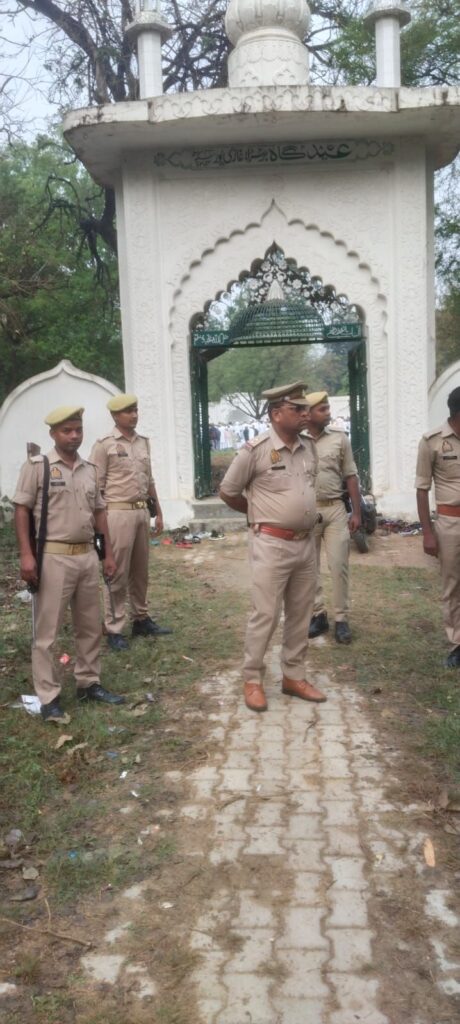 गाजीपुर।  ईद-उल-फितर के मद्देनज़र करंडा थाना पुलिस पूरी तरह अलर्ट मोड में नजर आ रही है। शनिवार को थाना प्रभारी अशोक कुमार गुप्ता ने पुलिस बल के साथ क्षेत्र के बड़सरा और चोचकपुर स्थित मस्जिदों का निरीक्षण किया और सुरक्षा व्यवस्था का जायजा लिया। फ्लैग मार्च के जरिए साफ संदेश दिया गया कि त्योहार पर किसी भी तरह की लापरवाही बर्दाश्त नहीं की जाएगी। एसओ अशोक गुप्ता ने मुख्य बाजारों, भीड़-भाड़ वाले इलाकों और संवेदनशील क्षेत्रों में खुद मोर्चा संभालते हुए सुरक्षा इंतजामों को परखा। ड्यूटी पर तैनात पुलिसकर्मियों को सख्त निर्देश दिए गए कि हर हाल में सतर्कता बनाए रखें और किसी भी संदिग्ध गतिविधि पर तुरंत कार्रवाई करें।