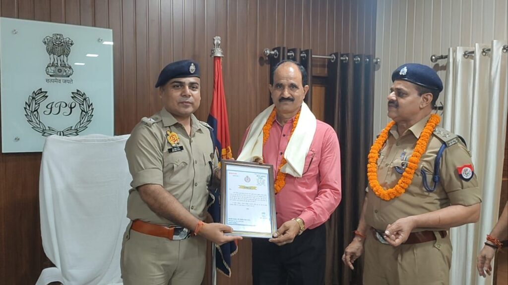 गाजीपुर। पुलिस सेवा में 60 वर्ष की अधिवर्षता आयु (कार्यकाल) पूर्ण होने पर पुलिस उपाधीक्षक भरत कुमार गौतम, आरक्षी ना0पु0 जगदीश सिंह यादव कुक देवनाथ कुशवाहा को पुलिस अधीक्षक द्वारा पुलिस लाईन गाजीपुर में आयोजित विदाई समारोह में अंग वस्त्र के साथ पुष्प माला पहनाकर तथा प्रमाण पत्र देकर सम्मानित किया गया । पुलिस बल में इनके योगदान के लिए पुलिस परिवार की ओर से पुलिस अधीक्षक द्वारा इनके उज्जवल भविष्य एवं हमेशा स्वस्थ रहने की कामना की गई। सम्मानित किया गया तथा सेवानिवृत्ति के पश्चात् अग्रिम जीवन हेतु शुभकामनायें दी गयी। इस अवसर पर अपर पुलिस अधीक्षक ग्रामीण, प्रतिसार निरीक्षक एवं अन्य अधिकारी/कर्मचारीगण व सेवानिवृत्त हुए अधि0/कर्मियों के परिजन उपस्थित रहे।